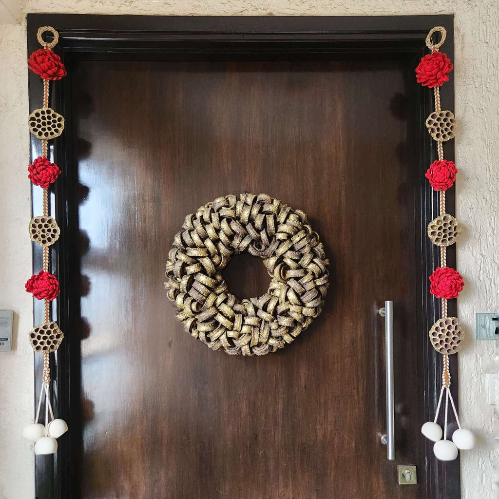 For occasions like Holi, Navratri, or Christmas, explore Torans that reflect the spirit of the celebration. Torans adorned with natural elements like sola wood flowers, dried flowers, dried leaves can instantly transform your home into a festive wonderland. Be it a grand celebration like wedding decors or an intimate gathering, dried flower torans have the power to make every occasion truly memorable. Abundance Latkan Set in red color and Vaastu good luck Toran , Grand Abundance Toran are a few festive dried flower toran sets which are our bestsellers from Forestkraft.