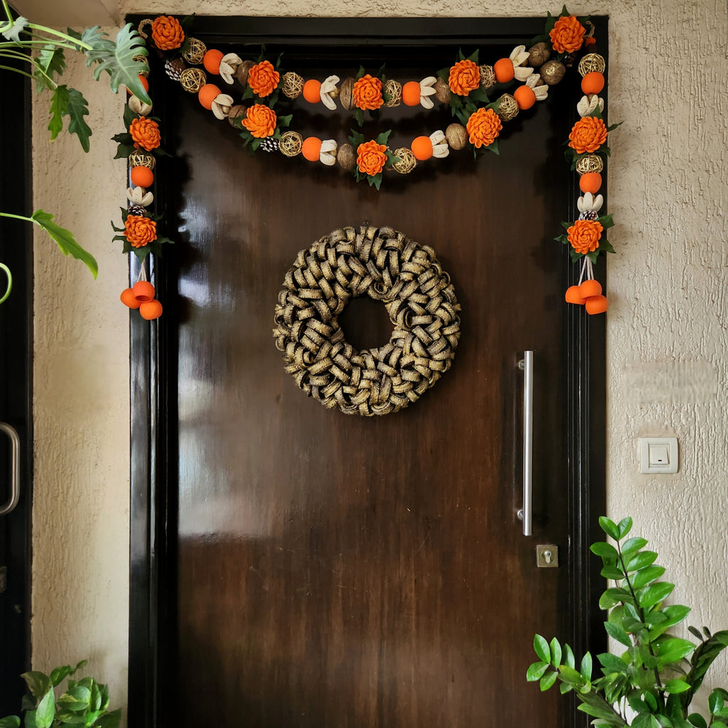 Conclusion: Incorporating Torans into your home decor unveils a world of timeless beauty, cultural heritage, and creative expression. From adorning your doorways and mandirs with our Abundance toran in orange color to adding seasonal flair and personalized touches, Torans enrich every aspect of your living spaces with home decor items. Discover the artistry and craftsmanship behind these exquisite decorative pieces and embrace the allure they bring to your home. Shop our exclusive collection of dried flower torans and sola wood flower Torans and embark on a journey of creating a home that reflects your unique style of home decor and cherishes the essence of cultural traditions.